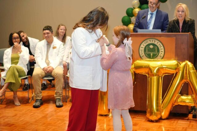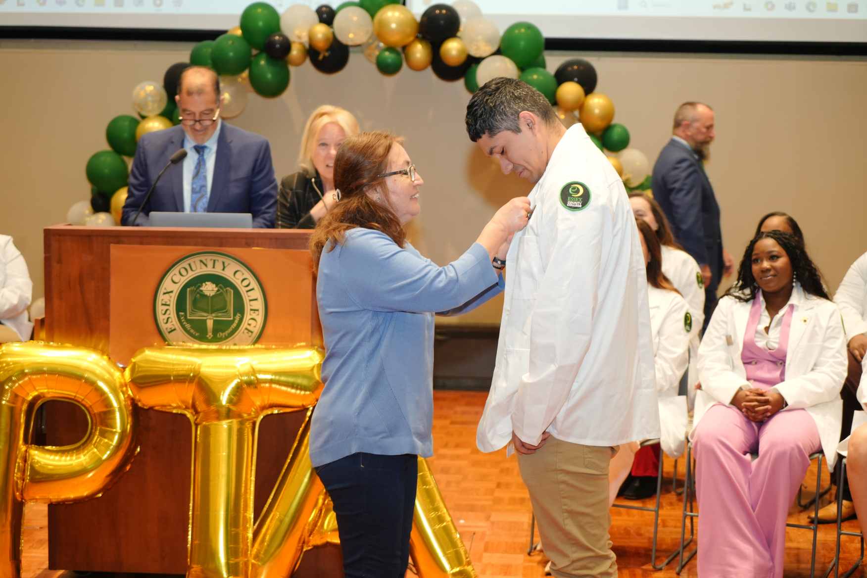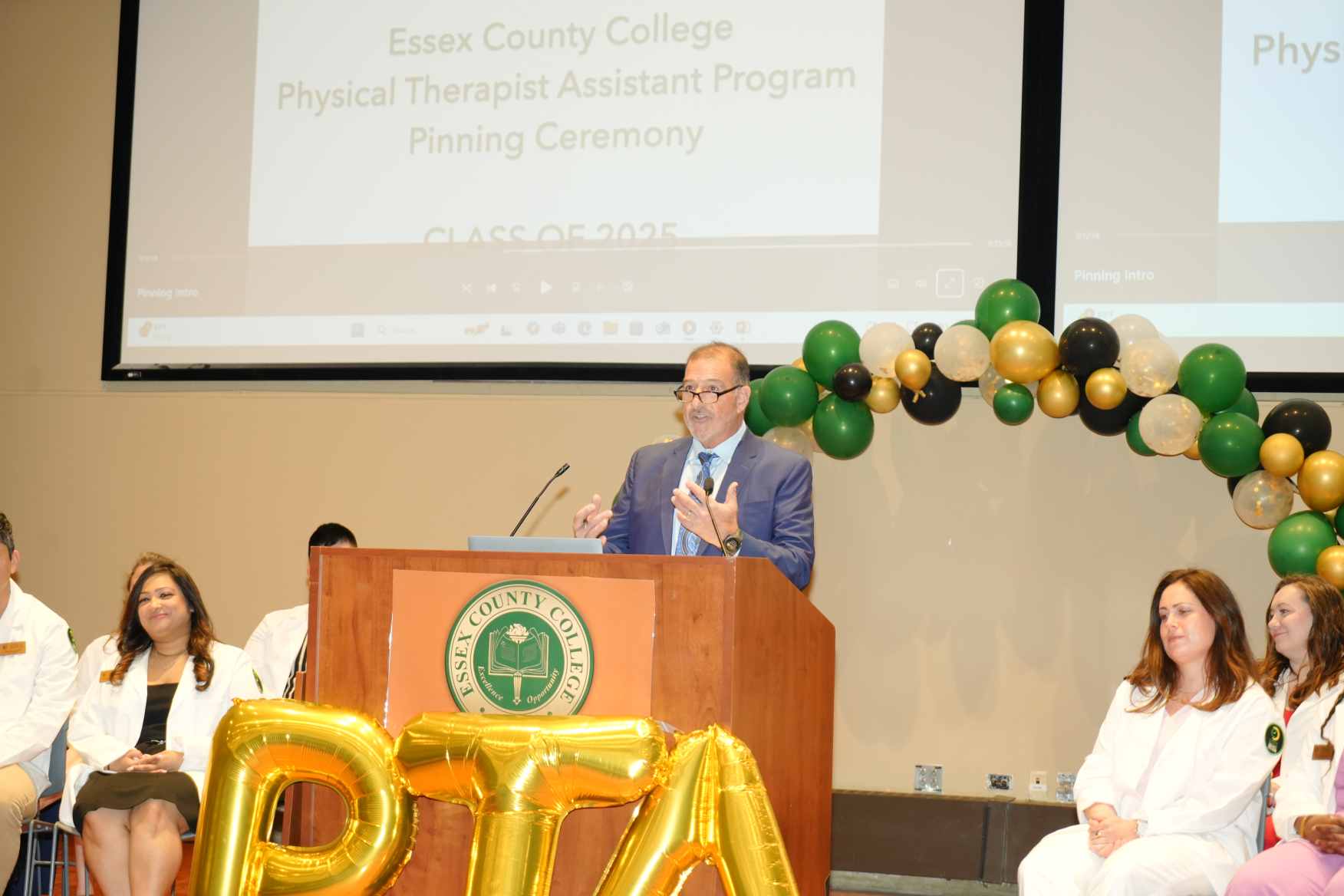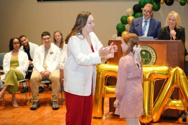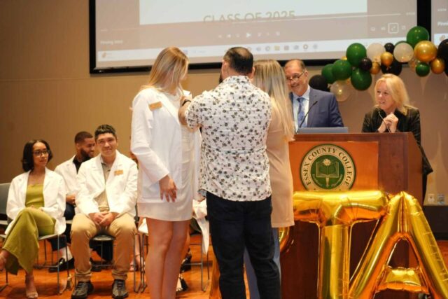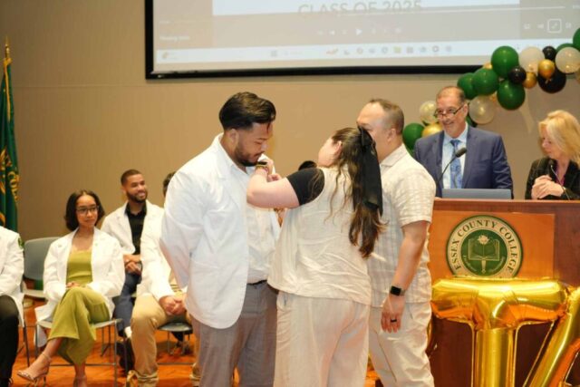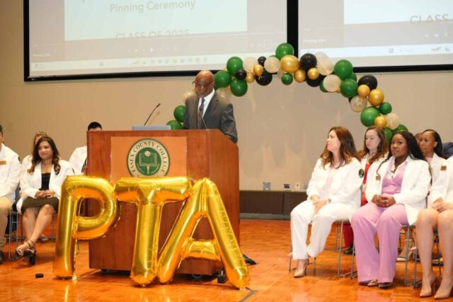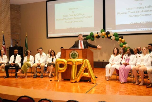 NEWARK, N.J.– Essex County College celebrated the graduates of its Physical Therapist Assistant (PTA) program during a pinning ceremony held Thursday, May 1, at the Newark campus. The milestone event marked the students’ transition from learners to health care professionals.